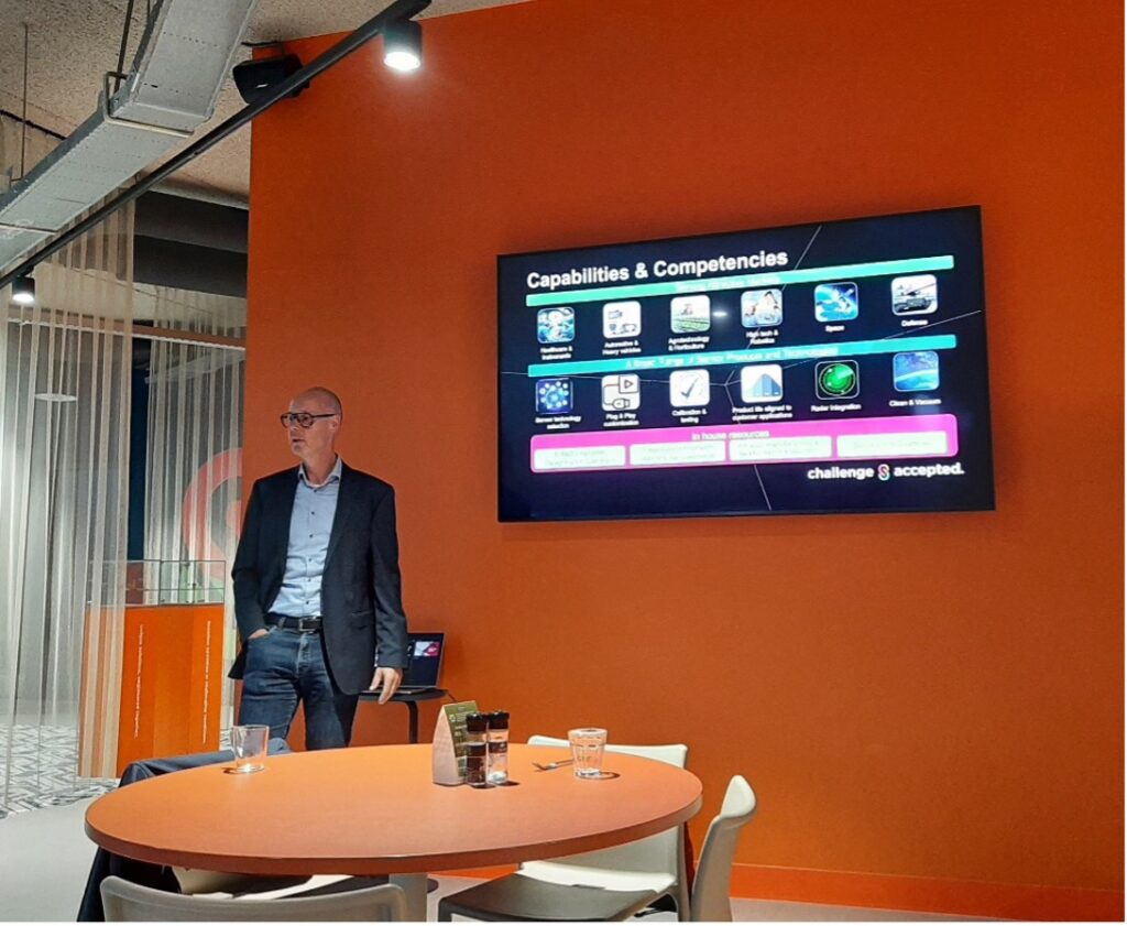Een groep van 20 NVTL-leden heeft op 17 september j.l. een bezoek gebracht aan het bedrijf Sentech in Nieuwkuijk. Sentech is gespecialiseerd in sensoroplossingen. Met ca. 70 medewerkers ontwerpen zij in nauwe samenwerking met de opdrachtgevers maatwerktoepassingen van sensoren en de integratie ervan in toepassingen van de bedrijven. Zij bedienen sinds 2000 meerdere markten, waaronder healthcare, automotive, high tech / robotics, space and defence. En natuurlijk ook de agrosector. Bijzonder is dat zij beschikken over een clean room voor de productie van de high tech oplossingen, een eis vanuit bijv. de space sector. Voor bijzondere producten heeft Sentech de beschikking over een vacuumoven waarmee diffusie van schadelijke stoffen in het eindproduct voorkomen kan worden. We werden ontvangen door Egbert Stellinga, product marketing manager, die een korte presentatie over het bedrijf verzorgde. Na een voedzame maaltijd kregen we een rondleiding door het kantoor, dat nog ruimte biedt voor verdere groei.